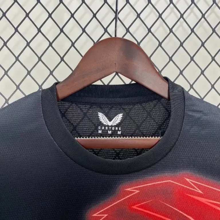 The Athletic Bilbao 24/25 Black & Red Pre-match Kit – Fan Version features a sleek and energetic design that highlights the club’s bold and dynamic identity. With a striking black base accented by vivid red details, this kit captures the essence of Athletic Bilbao’s fearless spirit on the pitch. The pre-match design is all about performance and style, featuring a modern, slim fit that provides optimal movement and comfort for fans. The iconic Athletic Bilbao crest proudly adorns the chest, symbolizing the club’s rich footballing history and fierce loyalty. Perfect for pre-match warm-ups or casual wear, this pre-match kit combines both aesthetic appeal and practical function, ensuring fans can support their team with pride and confidence, whether at the game or on the streets.