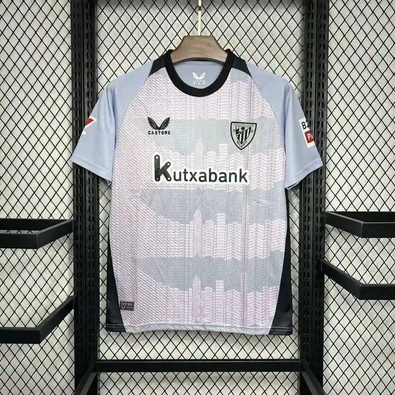 The Athletic Bilbao 24/25 Third Kit – Fan Version showcases a bold and contemporary design that perfectly blends modern aesthetics with the club’s iconic heritage. Featuring a striking color combination and innovative patterns, this kit stands out with its unique flair. The colors and design elements are carefully selected to embody the spirit of the team, reflecting both their Basque pride and cutting-edge football culture. The lightweight, breathable fabric ensures comfort for fans, whether they’re cheering from the stands or sporting it in daily life. The famous Athletic Bilbao crest sits proudly on the chest, further emphasizing the club’s legacy and identity. Whether worn for match days or as part of a casual look, this kit makes a statement while honoring the club’s unwavering tradition and passion for the game.