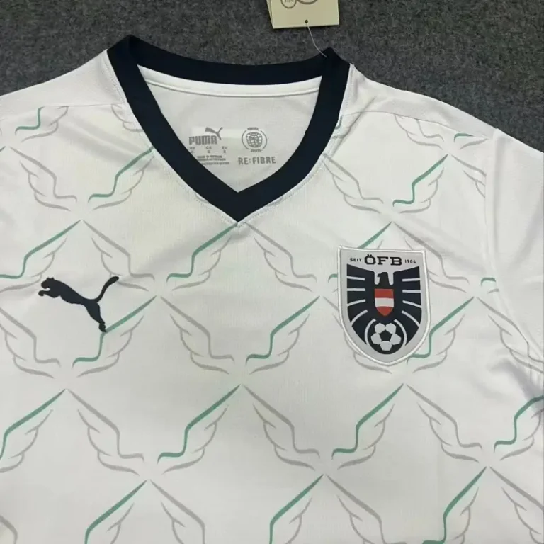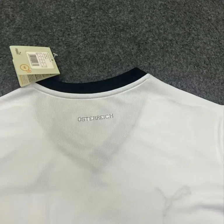 The Austria 2024 Euro24 Away Kit – Fan Version blends modern style with the country’s football heritage. Featuring a sleek white design with bold red accents, this retro kit exudes classic elegance while offering contemporary performance. Designed with comfort and durability in mind, it ensures you stay cool and confident as you cheer on Austria. Whether you’re at the match or showcasing your support casually, this vintage jersey pays tribute to Austria’s footballing legacy. The Austria 2024 Euro24 Away Kit is a must-have for any true fan of the national team.
