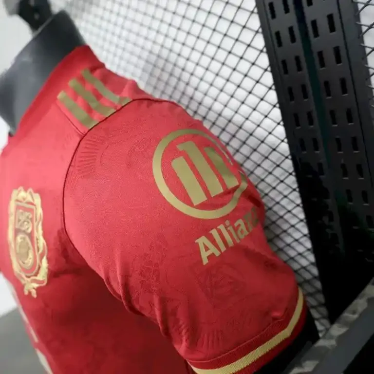 Crafted with precision, this classic jersey combines the vintage design elements synonymous with Bayern’s storied history, such as the striking red color, with modern, performance-enhancing features. Designed for the elite player, the Player Version of the kit includes advanced moisture-wicking technology and a tailored fit, ensuring maximum comfort and mobility during intense gameplay.