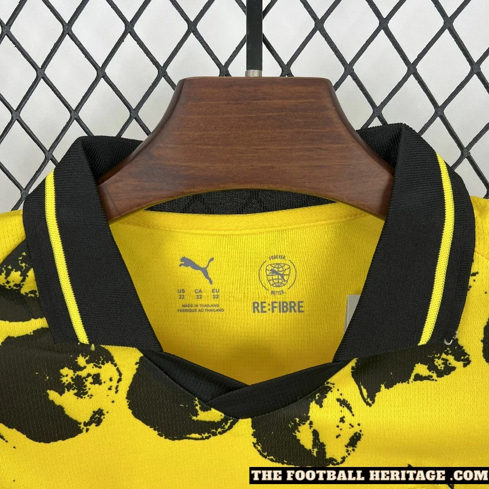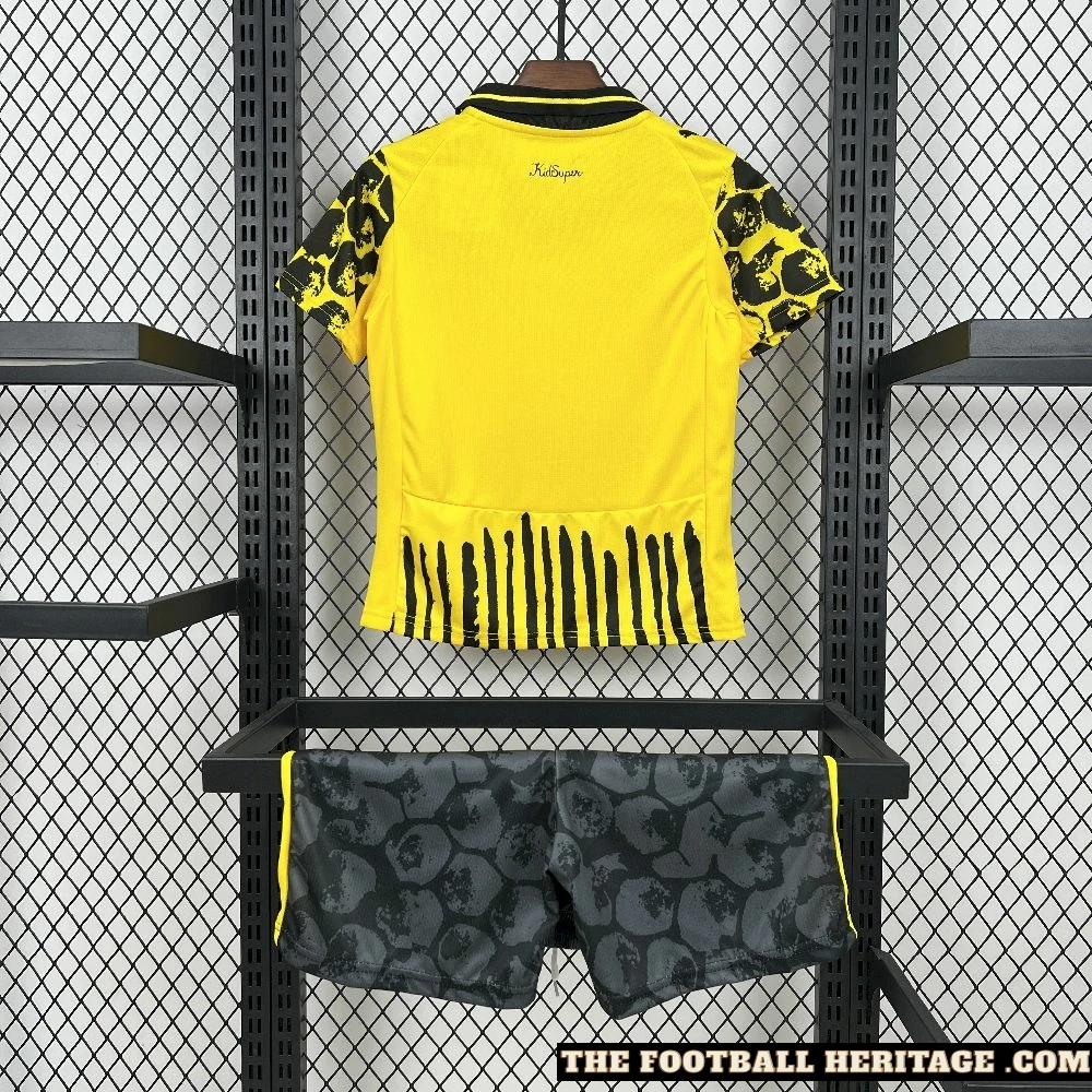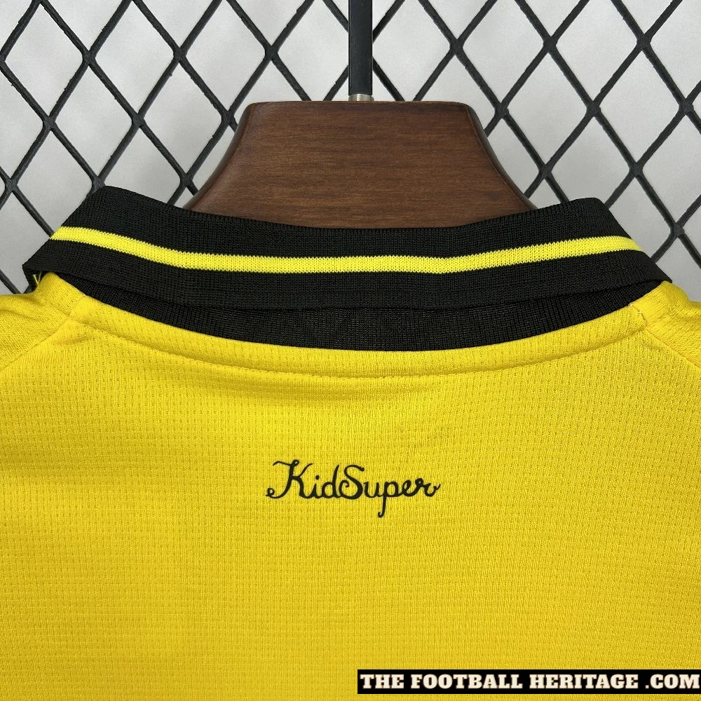 Bring avenue style to the pitch with the Borussia Dortmund x Kidsuper Kids Set, a bold collaboration combining BVB’s iconic Schwarzgelb identity with the playful, present day aesthetics of Kidsuper. This Football Jersey set for younger supporters features the classic Yellow and Black palette with standout photo accents, making it best for suit days, informal wear, or displaying off style on the streets.
