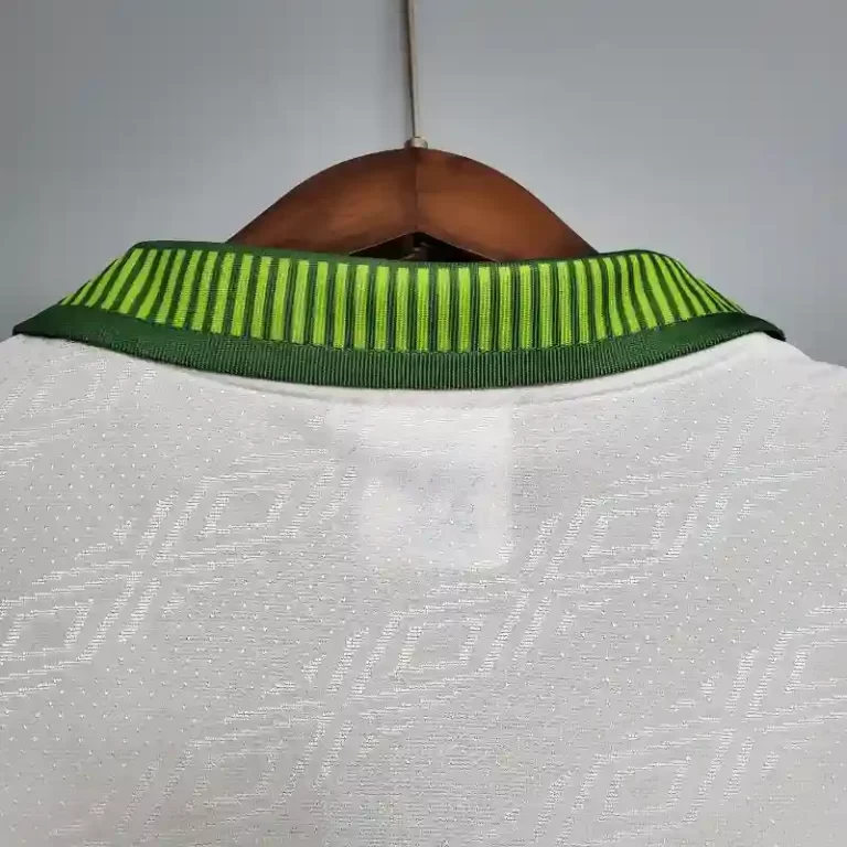 The Celtic 1993-95 Home Kit is a classic jersey that showcases the club’s timeless green and white Hoops, a symbol of Celtic’s football heritage. Designed by Umbro, this retro kit features a white buttoned collar and a subtle geometric pattern within the green stripes, adding a unique touch to the traditional look.