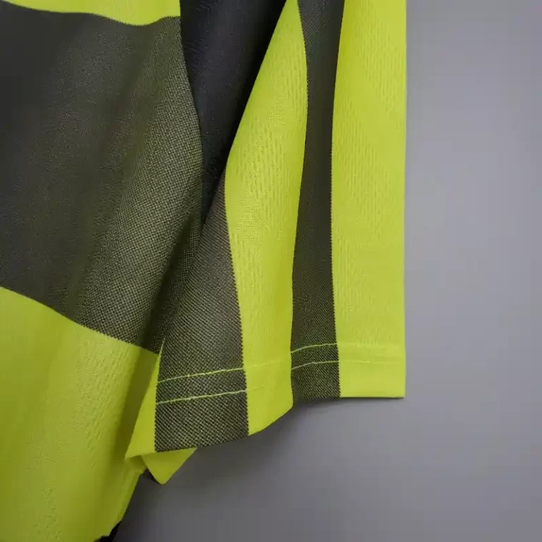 The Celtic 1996-97 Away Kit is a vintage jersey that encapsulates the club’s football heritage during a pivotal time in their history. Designed by Nike, this retro kit features a distinctive green and black color combination, creating a bold and striking look that contrasts with the traditional home kit. The shirt includes black sleeves and green accents, offering a modern twist on Celtic’s classic style.