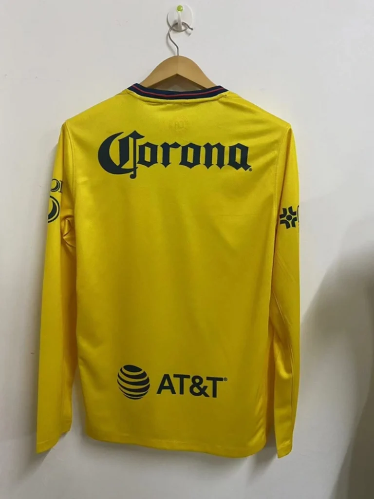 The Club América 24/25 Home Kit – Long Sleeve – Fan Version pays homage to the club’s football heritage with a design that blends tradition and modernity. Featuring the iconic yellow base, synonymous with Club América, this jersey is elevated by bold navy and red details that celebrate the team’s legacy of excellence. The long sleeve construction provides an elegant and versatile look, ideal for cooler days or stylish everyday wear.