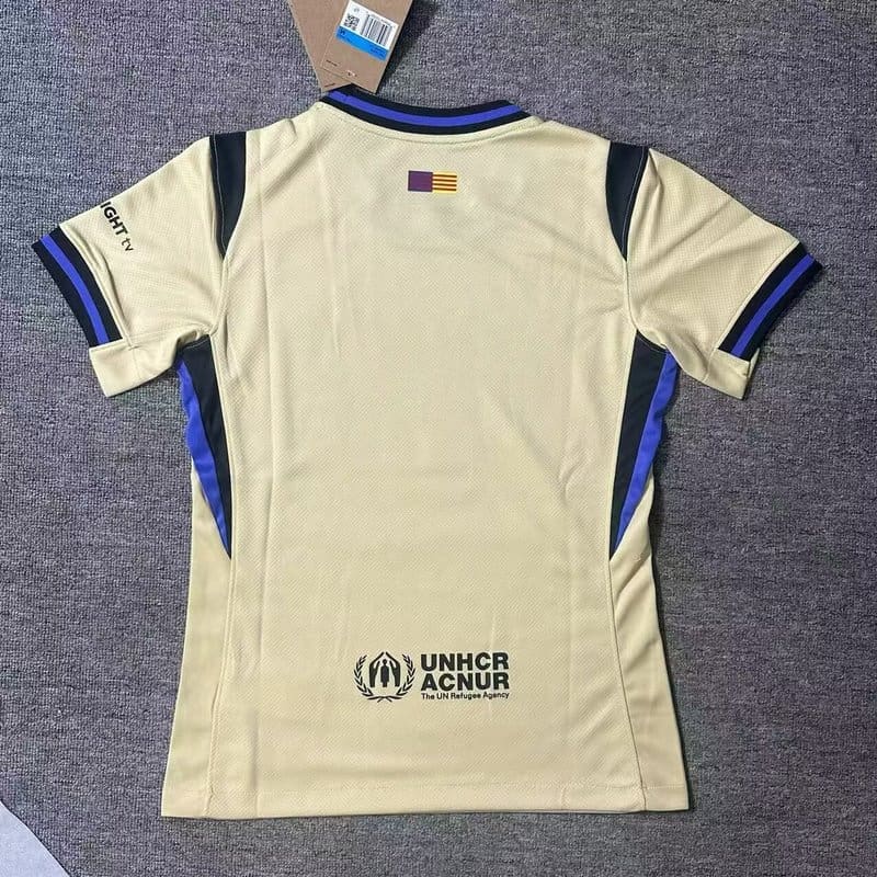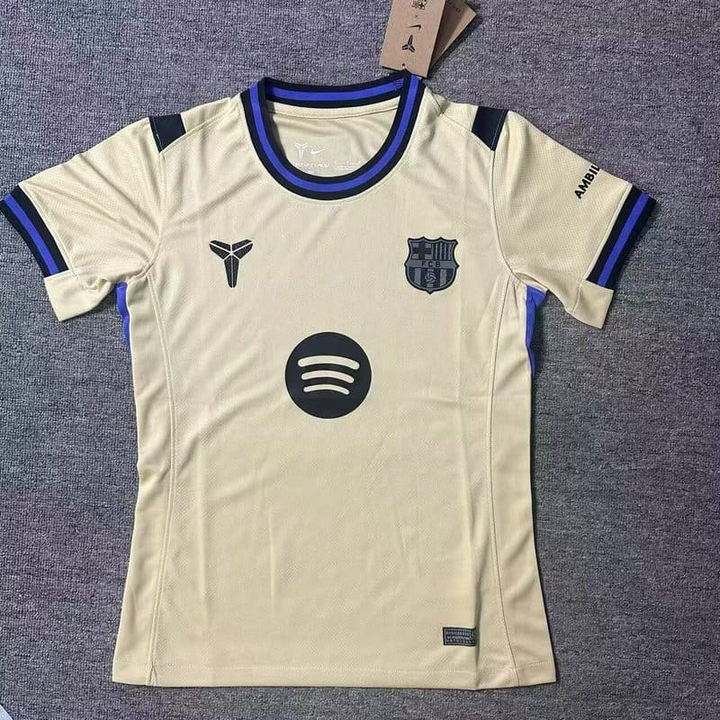 The FC Barcelona Black Mamba 25/26 Away Kit – Fan Version is a bold tribute to the late Kobe Bryant. With a sleek black base and subtle gold and purple accents, this football jersey channels the fearless energy of the Black Mamba, reimagined for Barça’s away days.