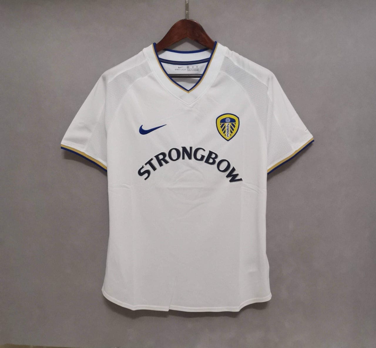 The kit functions a crisp white base with blue and yellow accents on the collar, sleeves, and sponsor info, reflecting the membership’s traditional colorations in a smooth early-2000s layout. Its dependent in shape and 2000/01 styling make this Retro Kit perfect for display, informal wear, or reliving Leeds United’s memorable campaign.