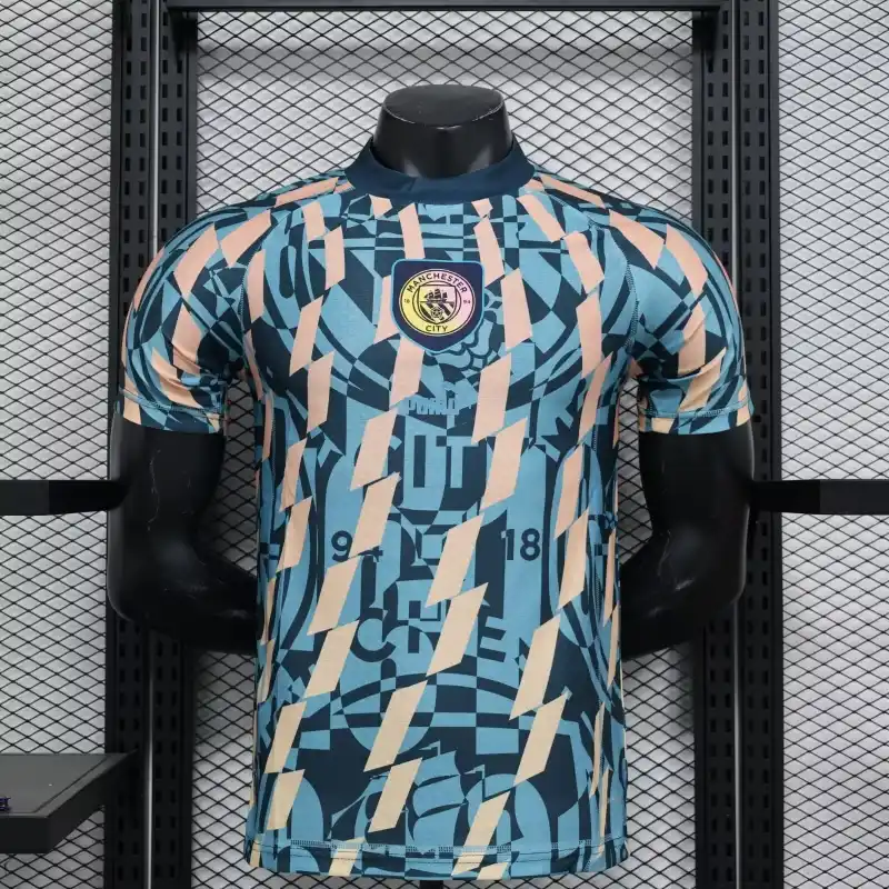 The Manchester City 2024/25 FTBLSTATEMENT Retro Jersey – Player Version is a bold homage to football heritage and the club’s iconic legacy. Featuring a design inspired by classic kits with a modern edge, this jersey integrates dynamic patterns and sleek detailing to make a true statement on and off the pitch. Engineered with advanced performance technology, it offers a lightweight, breathable fit tailored for elite athletes, ensuring superior comfort and mobility. Perfect for fans of vintage jerseys with cutting-edge functionality, this player version celebrates Manchester City’s proud history while showcasing the future of football fashion.