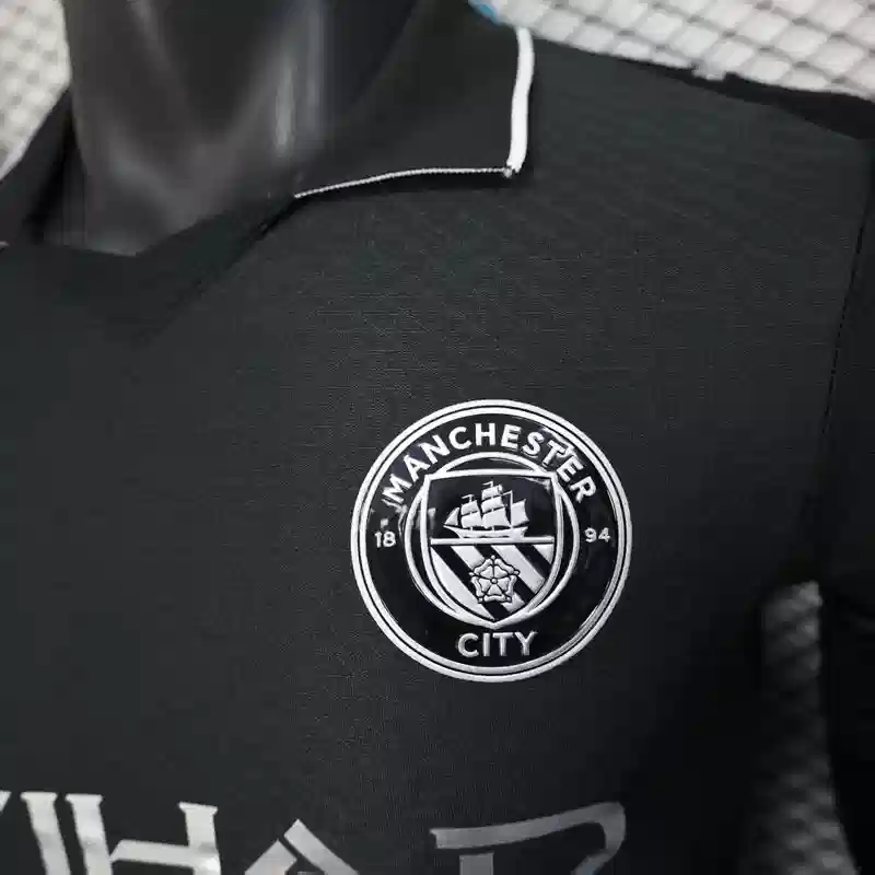 The Manchester City 25/26 Away Kit – Player Version comes in a striking all-black design that is both elegant and intense. This football jersey is made for the field and has a sleek look and cutting-edge technology that make it perform at an outstanding level.