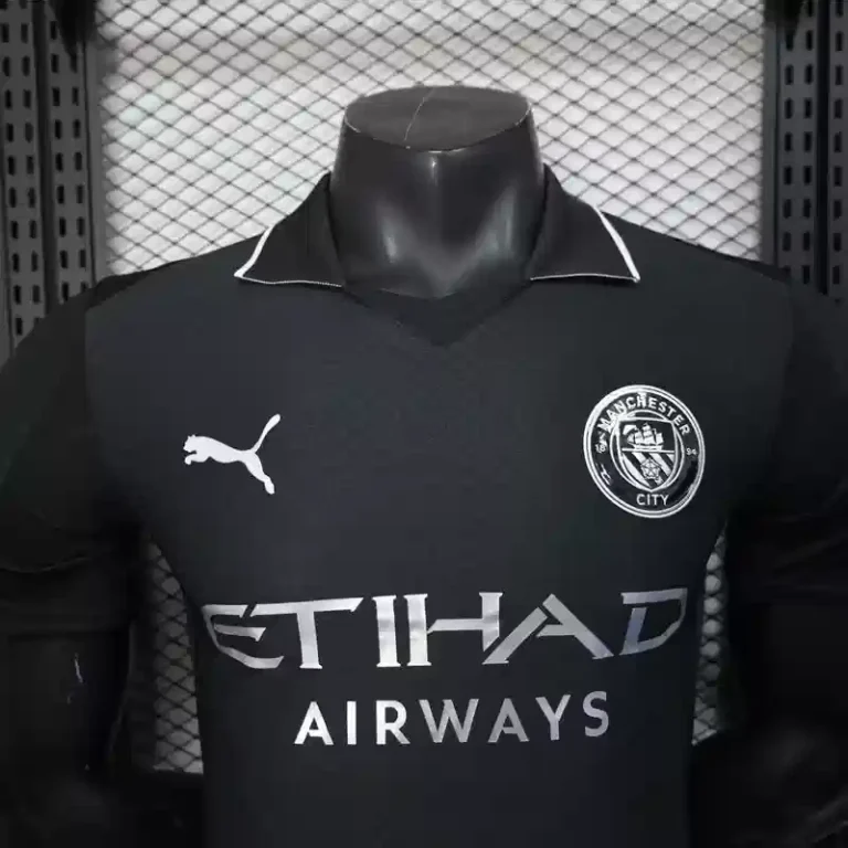 With a blacked-out foundation, a silver Puma logo, and tonal detailing, it is a nod to City’s winning history while also showing what soccer kits will look like in the future. It has the same fit, ultra-lightweight fabric, and heat-applied logos as what players wear on game day.