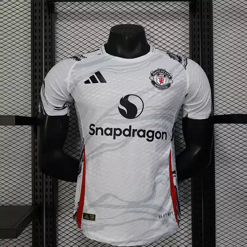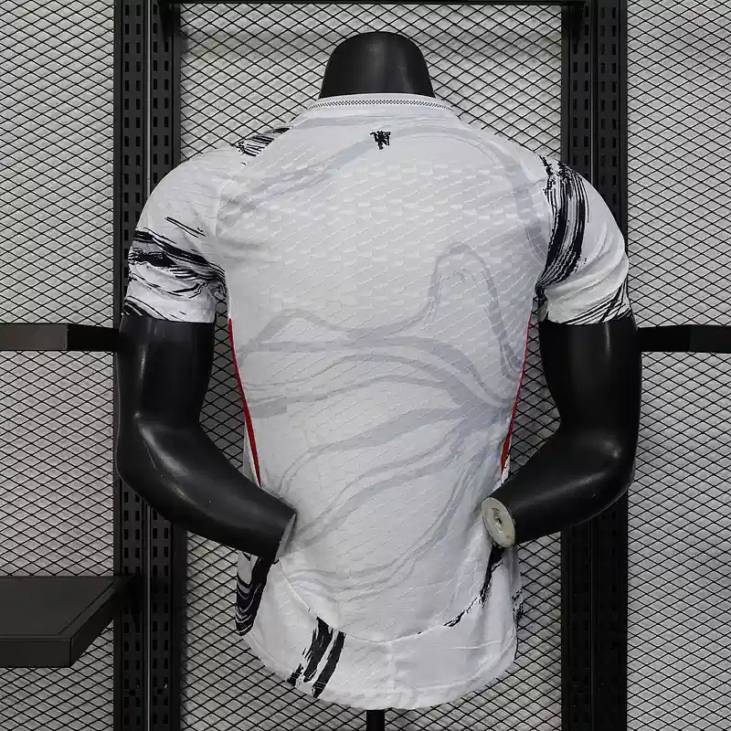 The Manchester United White and Black Kit – Player Version blends minimal style with elite performance. Featuring a crisp white base accented by sharp black detailing, this football jersey reflects both modern energy and Manchester United’s classic legacy.