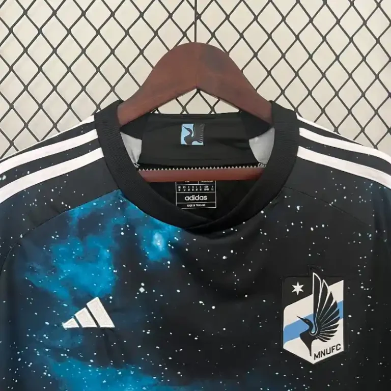 The Minnesota United 24/25 Home Kit – Fan Version is a sleek tribute to the Football heritage, blending a retro kit aesthetic with modern performance. Featuring the club’s signature light grey base, this retro jersey is accented with bold black and sky-blue details, representing the spirit of the Loons on and off the pitch.