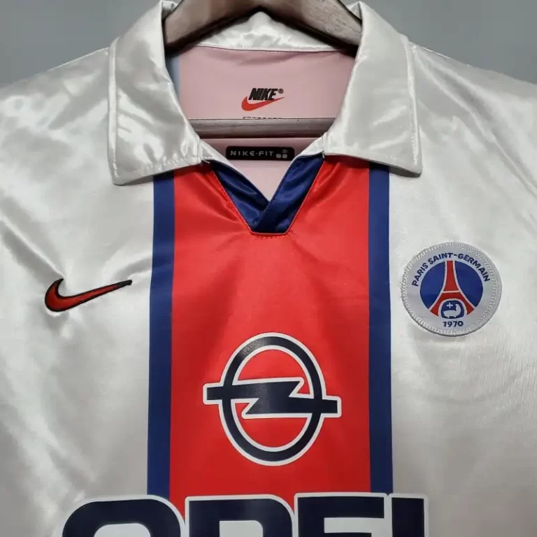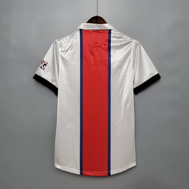 The Paris Saint-Germain 1998/99 Away Kit is a stunning piece of the Football heritage, representing PSG’s late-90s era with a sleek and bold design. This retro kit features a crisp white base with striking red and blue accents, staying true to the club’s iconic color scheme while offering a fresh, dynamic look. Worn by stars like Jay-Jay Okocha, Marco Simone, and Laurent Robert, this retro jersey saw PSG battle in Ligue 1 and European competitions, creating unforgettable moments for fans. A true classic jersey, this classic kit remains a must-have for collectors and supporters alike. Relive PSG’s rich legacy with this vintage jersey!