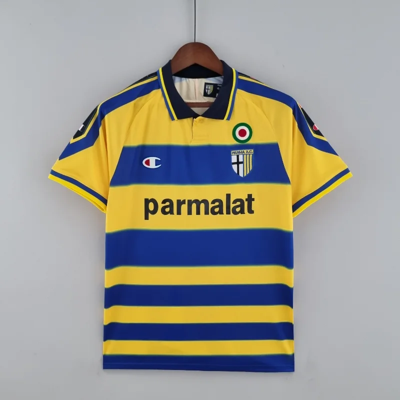 The Parma Calcio 1999-2000 Home Kit is a celebrated retro kit that embodies the football heritage of the turn of the millennium. With its iconic yellow and blue stripes, this classic kit is forever etched in the memories of fans who witnessed Parma’s golden era. Worn by legends like Enrico Chiesa, Fabio Cannavaro, and Gianluigi Buffon, this vintage jersey symbolized the club’s strength in Italian football and their success in European competitions during that period. The retro jersey design captures a timeless elegance that still resonates with football enthusiasts today.