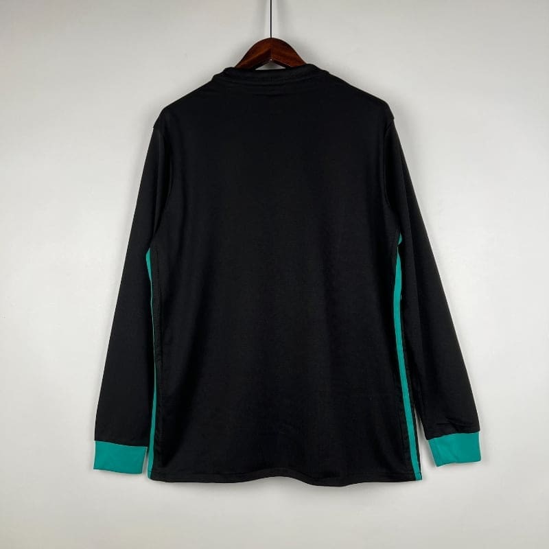 The Real Madrid 2017-18 Away Kit – Long Sleeve – Fan Version is a tribute to the club’s rich football heritage, blending modern design with classic elements. This retro jersey features a striking shade of deep purple, complemented by bold black details and the iconic three stripes on the shoulders, creating a sleek and stylish look. Worn by legends such as Cristiano Ronaldo, Karim Benzema, and Luka Modrić, it symbolizes the club’s dominance during a remarkable season. With its long sleeves and comfortable fit, this vintage jersey is a standout piece for any fan, offering a perfect mix of style, tradition, and performance. Celebrate Real Madrid’s football legacy with this must-have kit.