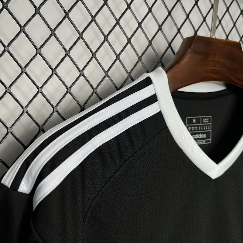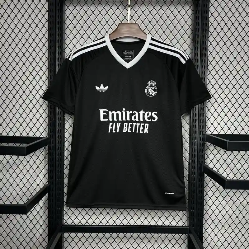 The Real Madrid 24/25 Black Goalkeeper Kit – Fan Version is a powerful tribute to the club’s football heritage and the art of goalkeeping. This retro kit combines sleek, bold black with subtle accents, creating a modern yet timeless look that channels the essence of classic kits from previous decades. Featuring sharp, angular designs, this vintage jersey is not only visually striking but also provides top-tier performance features for maximum comfort and flexibility.