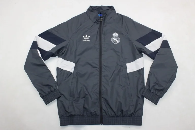 The Real Madrid 24/25 Gray Windbreaker is the perfect blend of football heritage and modern functionality. This retro kit inspired windbreaker offers a lightweight, sleek design that pays homage to classic kits while incorporating cutting-edge technology for performance. The refined gray color serves as a timeless tribute to the club’s legacy, featuring subtle detailing that evokes the vintage jersey era.