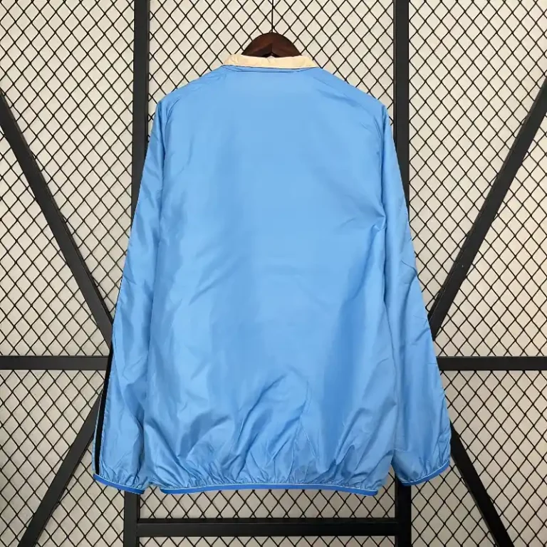 The Real Madrid 24/25 Reversible Windbreaker – Blue & Beige combines elegance, functionality, and football heritage in a design that honors the club’s legacy while offering versatility for modern fans. This retro kit takes inspiration from the classic vintage jersey designs that Real Madrid has showcased through the years, giving it a nostalgic yet fresh look.