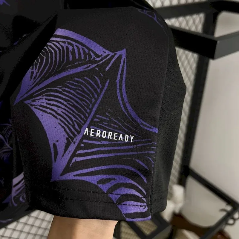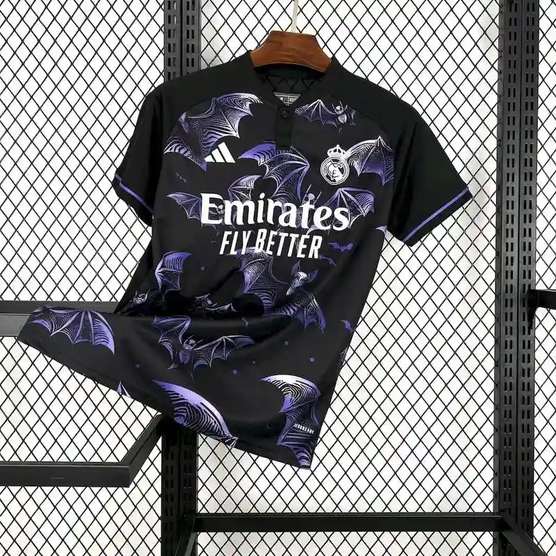 The Real Madrid Purple Bat Jersey 24/25 – Fan Version is a striking blend of modern design and football heritage. This classic jersey features a bold purple base with subtle bat-wing-inspired accents, symbolizing power and agility. Perfect for fans of retro jerseys and vintage aesthetics, it celebrates Real Madrid’s timeless legacy while offering a fresh, dynamic look. Designed for comfort and style, this fan version of the classic kit ensures you can showcase your love for Los Blancos both on and off the pitch.