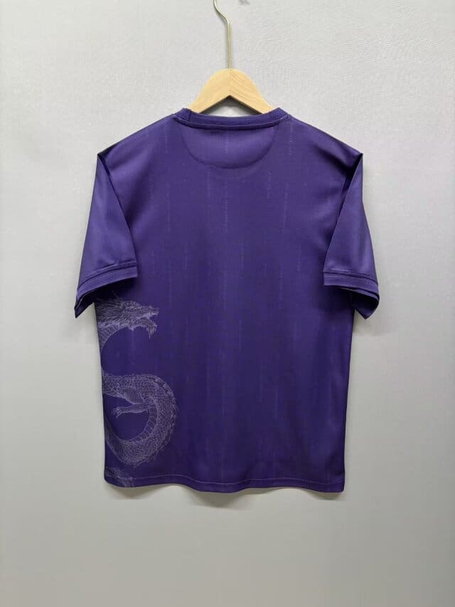 The Real Madrid Purple Dragon Special Edition Kit for the 2024/25 season is a captivating tribute to the club’s legendary status, merging innovative design with mythical elements. This fan version football jersey features a rich purple base adorned with an intricately designed dragon motif, symbolizing power, strength, and resilience. The iconic Real Madrid crest and sponsor logos are seamlessly integrated, enhancing its classic appeal.