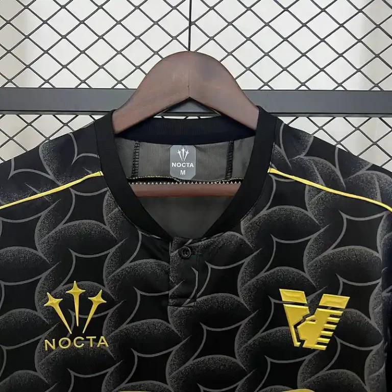 The Venezia F.C. 24/25 Black Special Edition Jersey – Fan Version is a stunning tribute to the Football heritage, blending retro jersey aesthetics with the club’s unique Venetian elegance. This classic kit features a sleek black base, accented with gold detailing that reflects the timeless grandeur of Venice.