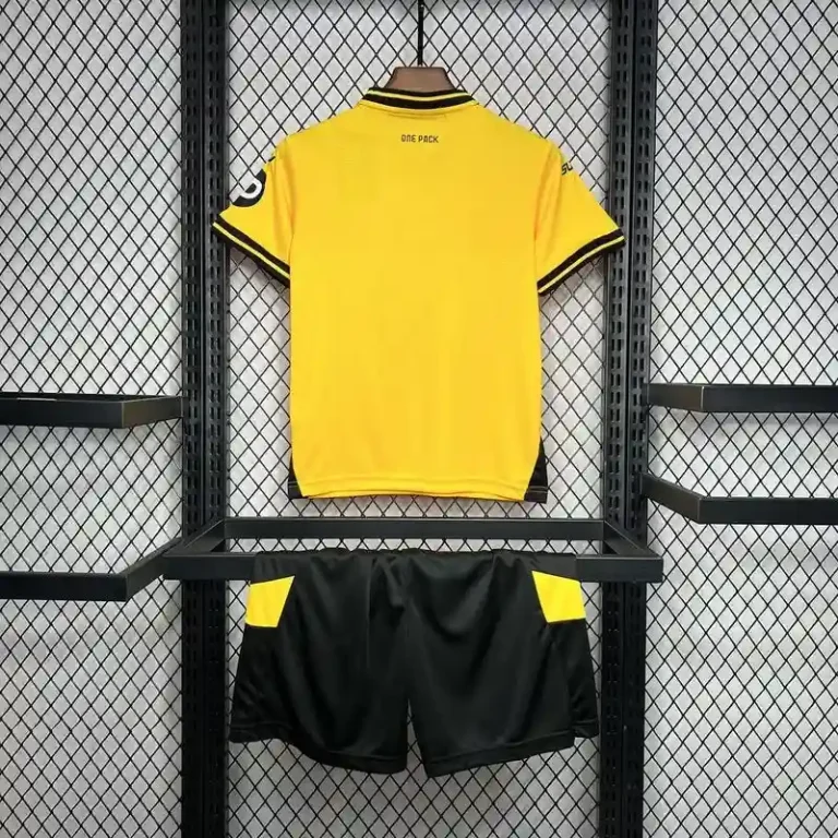 The Wolves 24/25 Home Jersey – Kids version brings the club’s football heritage to the next generation of fans. Designed with comfort and style in mind, this retro jersey features the iconic gold and black colors that represent the spirit of Wolves. Crafted from lightweight, breathable fabric, it ensures young supporters can enjoy the game in comfort. Whether playing on the pitch or supporting their team from the stands, this classic kit is a perfect addition to any young fan’s collection.